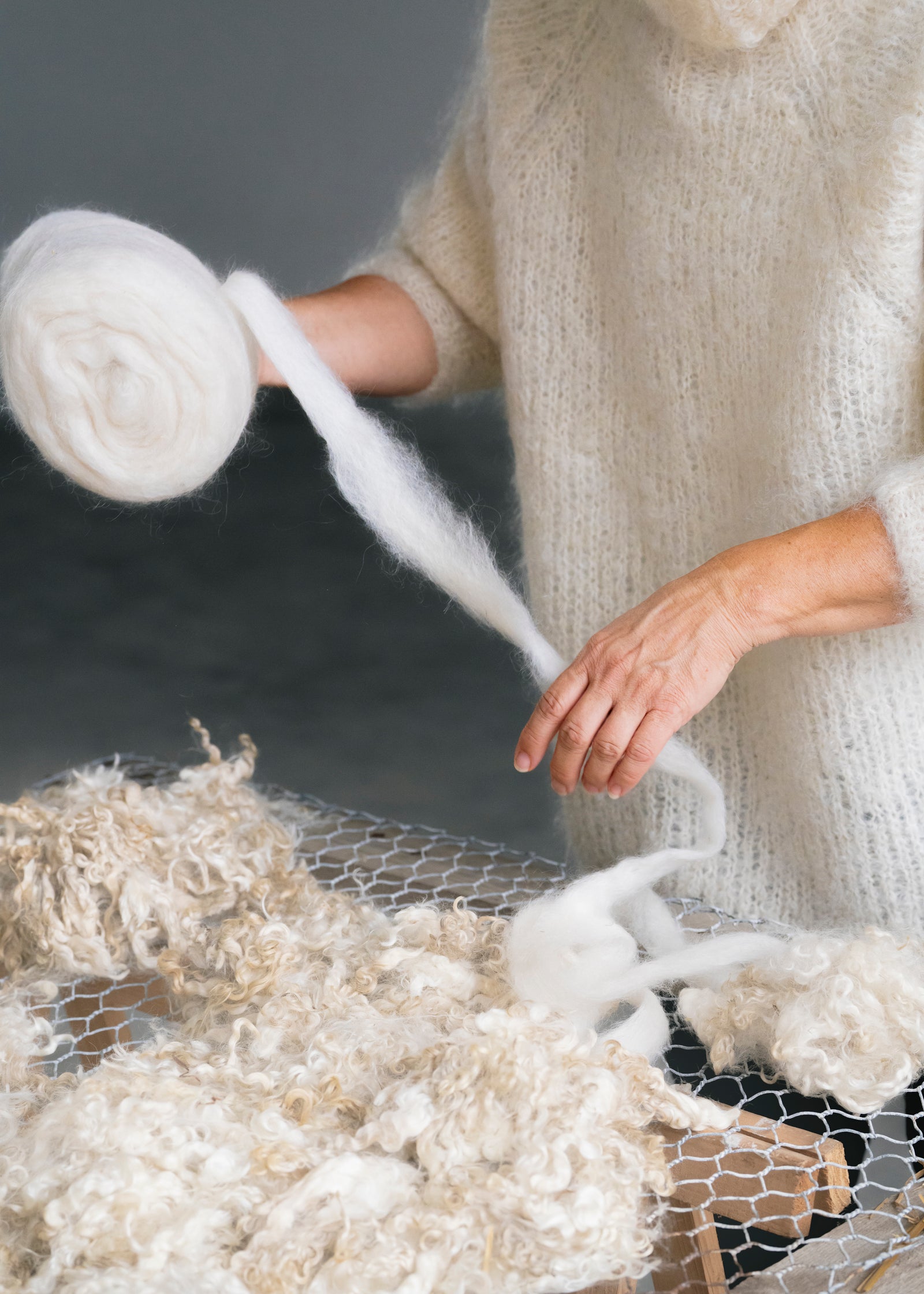 Utforsk vår myke mohairfiber og spinn dit eget garn.