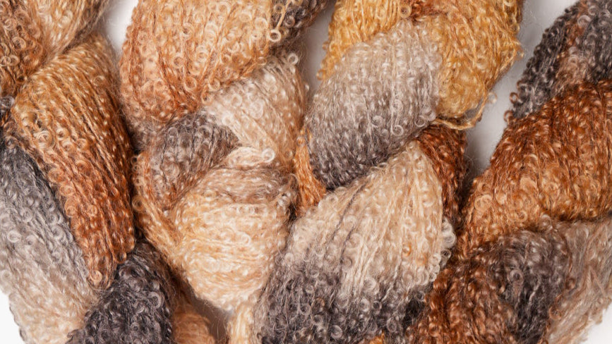 Boucle Mohair er et naturprodukt av Sør Afrikansk mohairgeiter. Garnet er laget av litt grovere fiberkvalitet enn kidmohair.