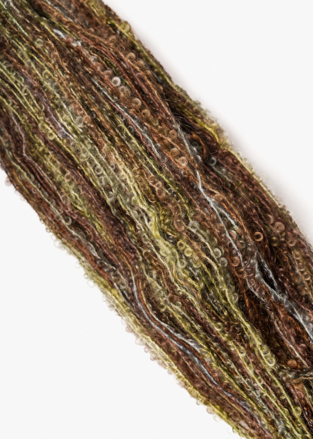 Boucle Mohair er et naturprodukt av Sør Afrikansk mohairgeiter. Garnet er laget av litt grovere fiberkvalitet enn kidmohair.